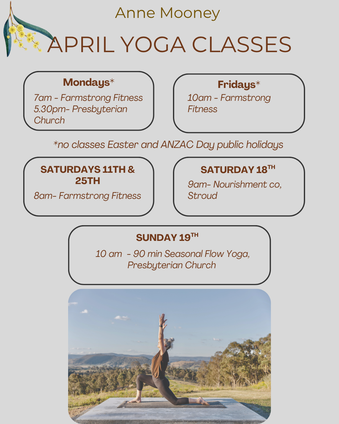 Bookings: Advance bookings are preferred — send me a quick message on 0424962436 or anne@annemooney.com.auÂ